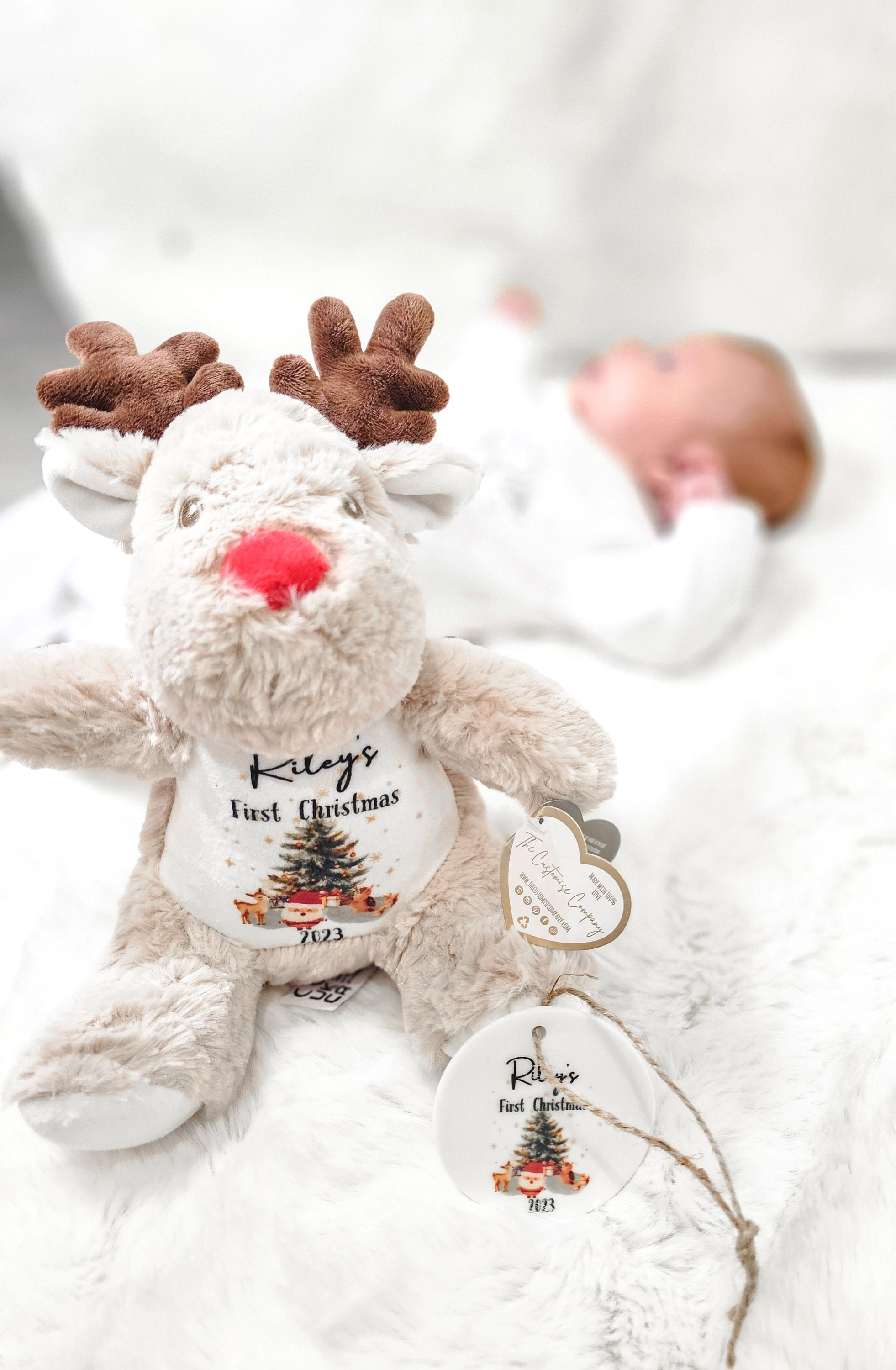 First Christmas Treasure: Personalized Plush Reindeer Teddy Bear Looking for the ideal gift for your...
