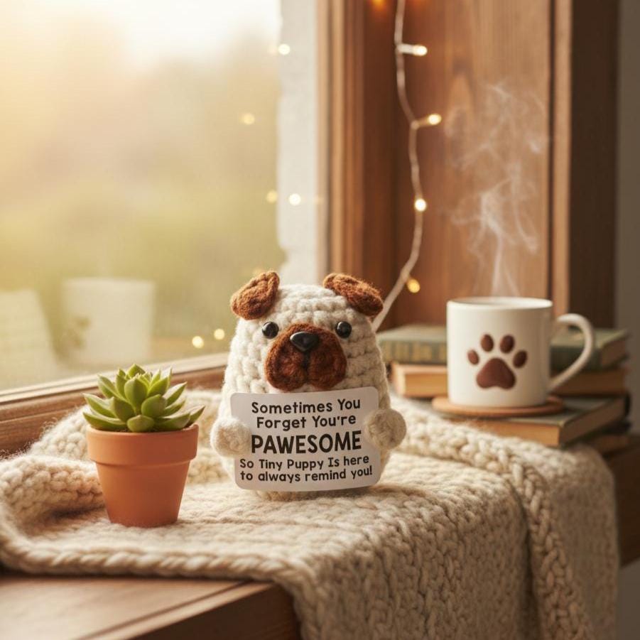 "Bring a dose of joy and encouragement to your day with this handmade crochet Pug Puppy--your n...