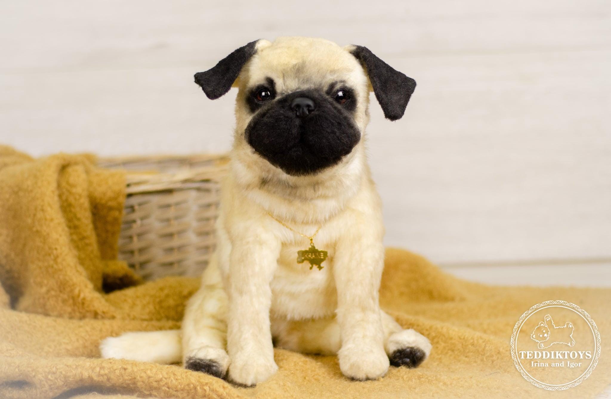 Handmade Pug Puppy Plush Toy: Realistic Dog Replica