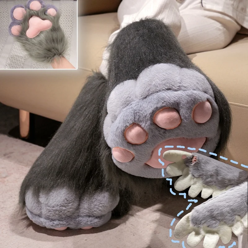 Cosplay Furry Cat Claw Gloves Bird wings Faux Fur Fox Paws Plush To...
