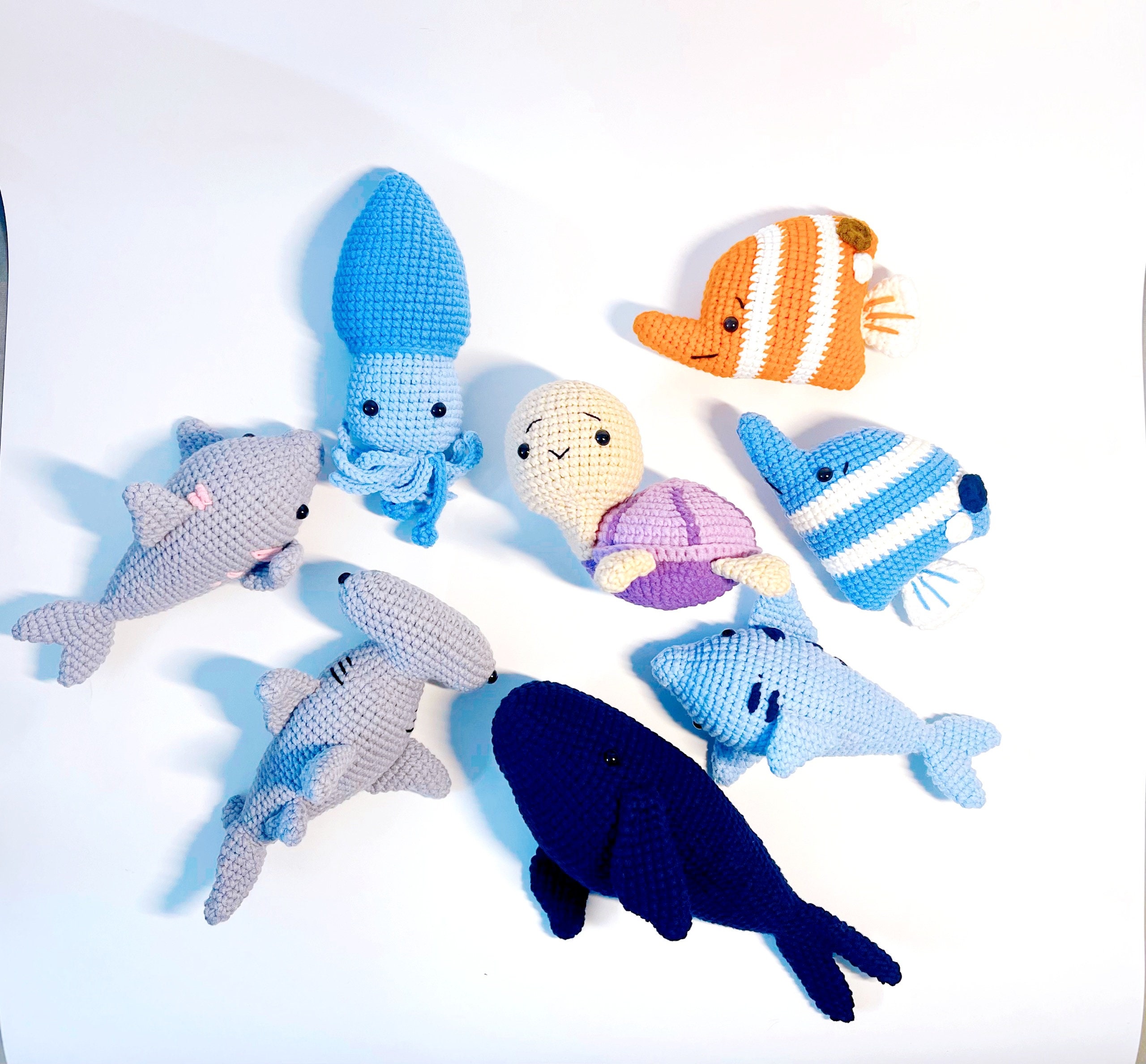 Crochet Sea Animals, Sea Animal Plush, Crochet Turtle, Crochet Dolphin Plush, Hammer Shark Plush, Cr...