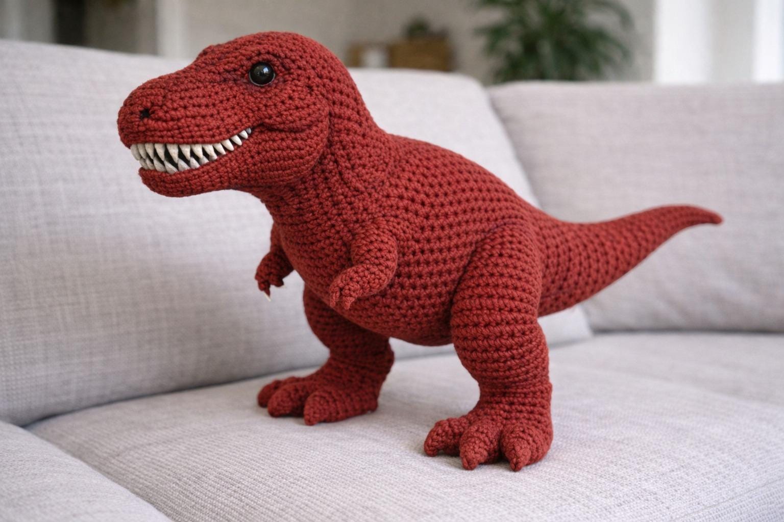 Crochet T-Rex Plush, Handmade Dinosaur Amigurumi, Cute Crochet Dino...