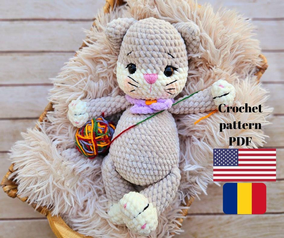 "CROCHET PATTERN \"Cat\" . No sew. Digital English P...