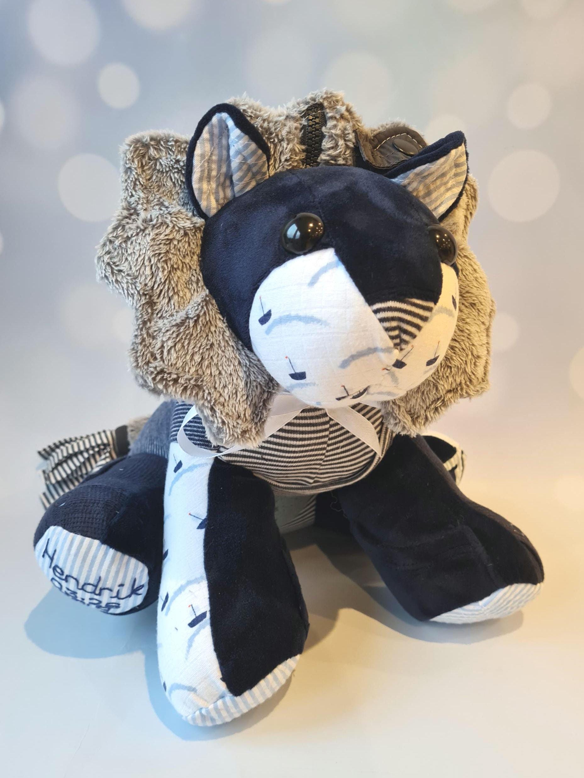 Lion keepsake made from baby clothes, baby clothes lion, memory lio...