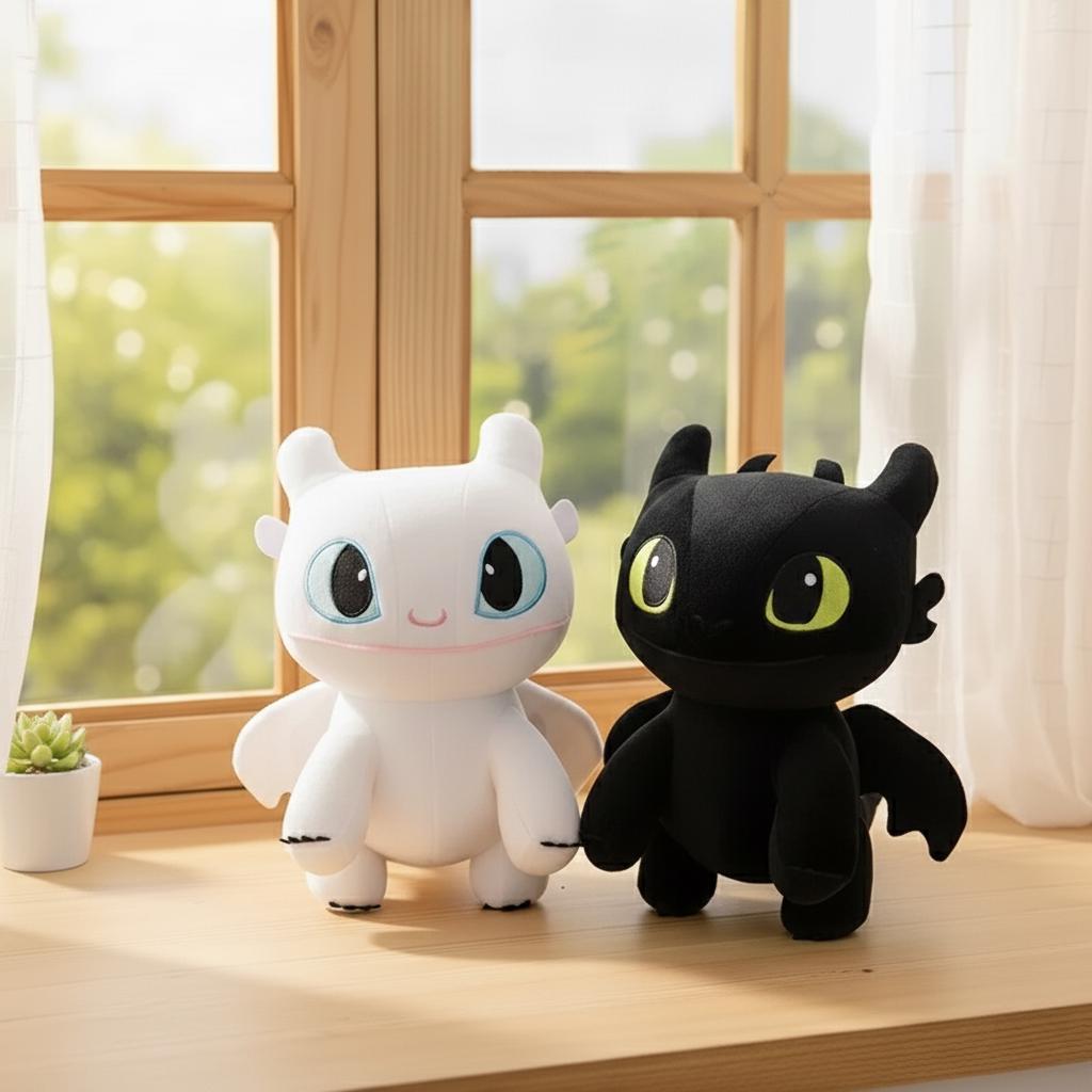 Bring home the magic of your favorite dragon duo with this Night Fury & Light Fury plush, inspir...