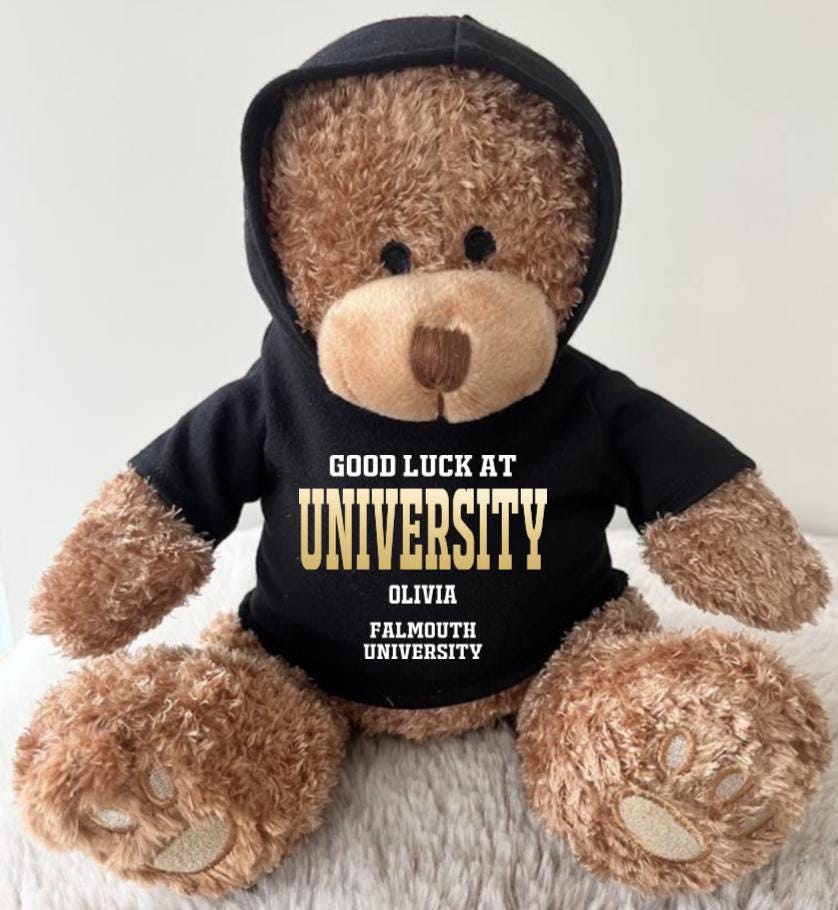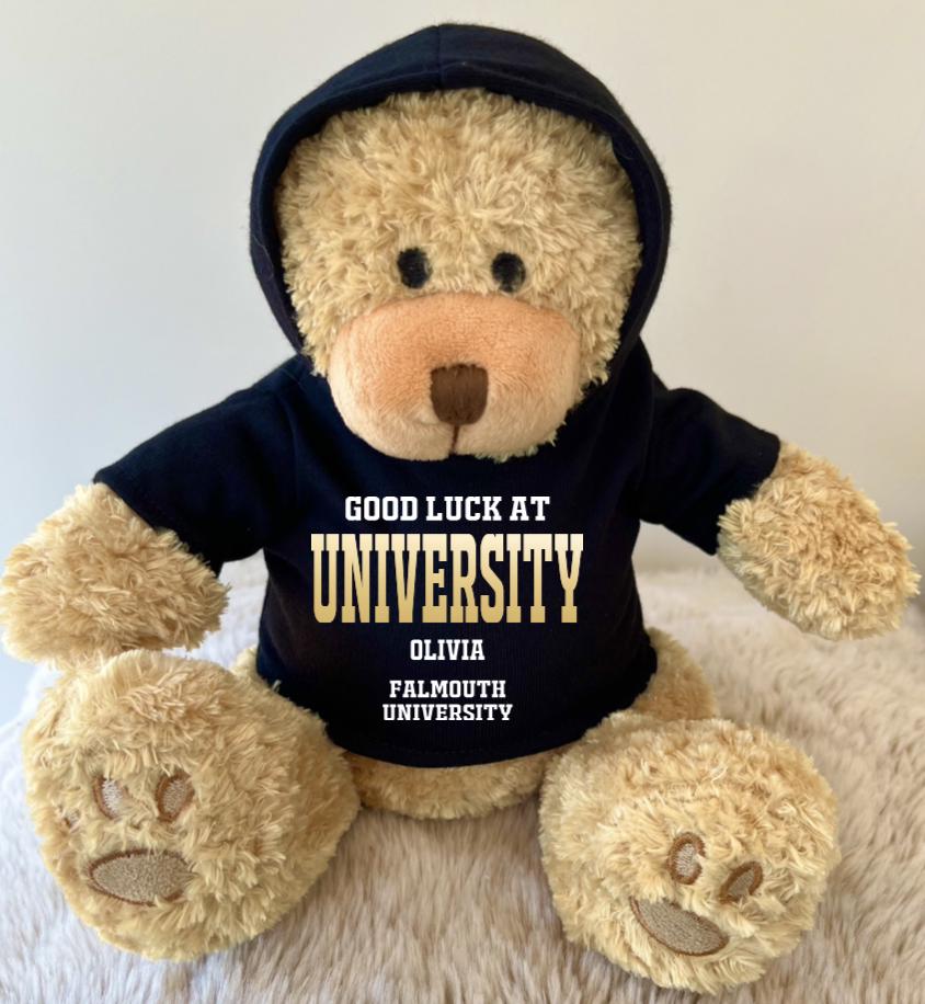 Personalised University Good Luck Hoodie Bear, Good Luck at Uni Kee...