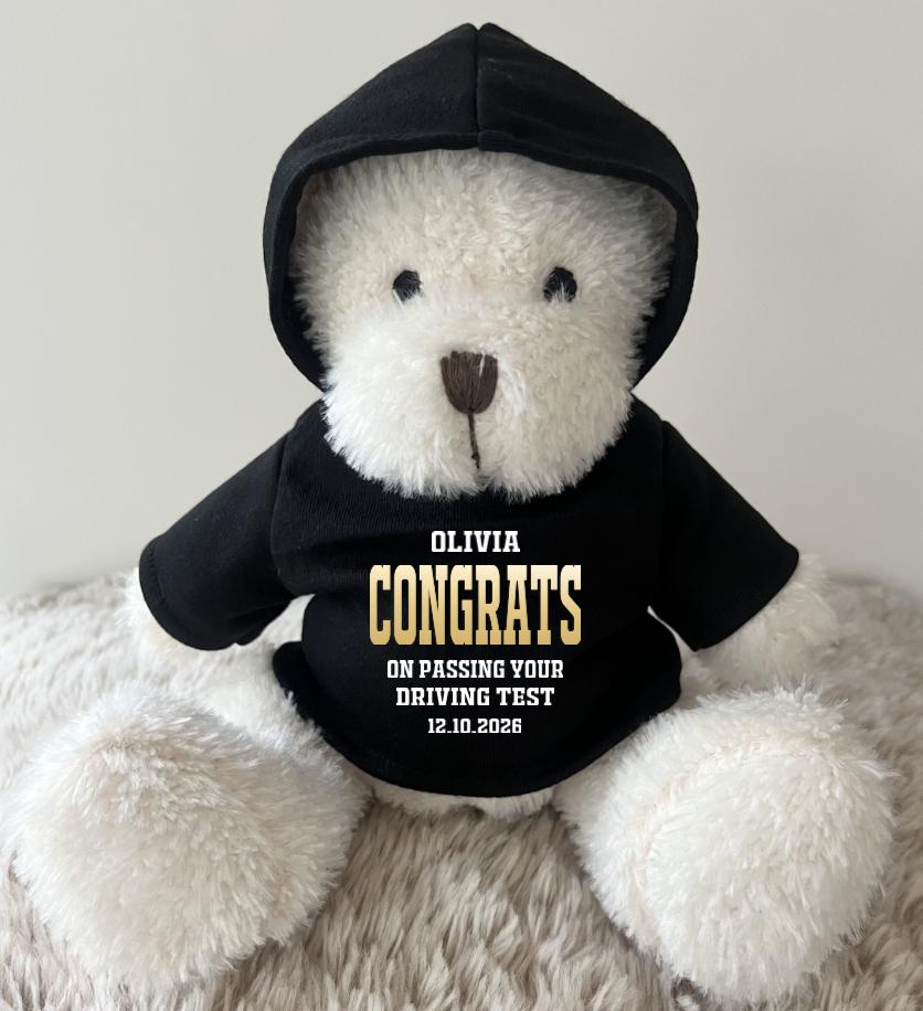 Personalised Well Done Passing Driving Test hoodie bear. Such an adorable keepsake. WELL DONE is in ...