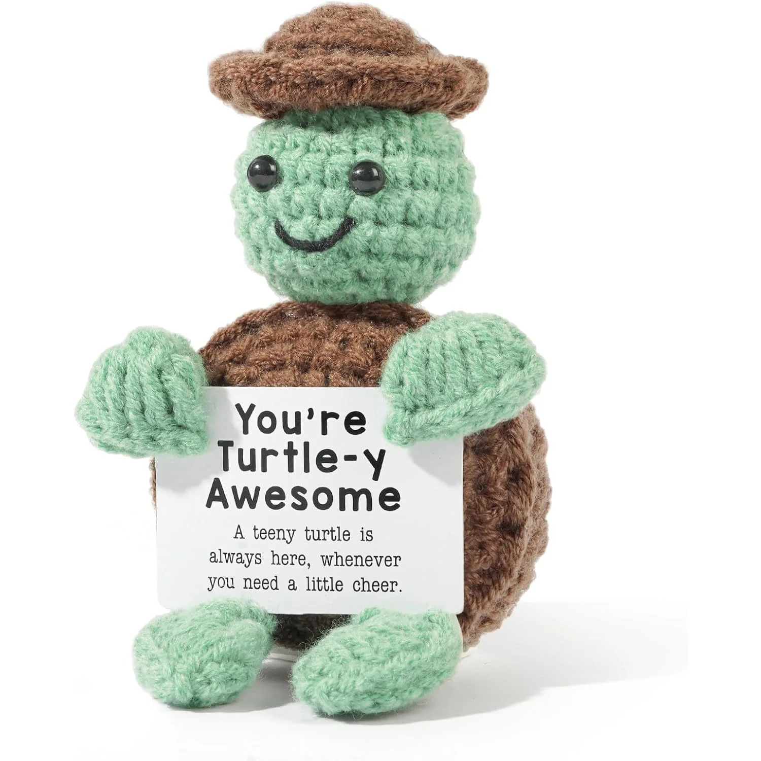 Positive Inspirational Crochet Cowboy Hat Turtle Desktop Decor Funn...