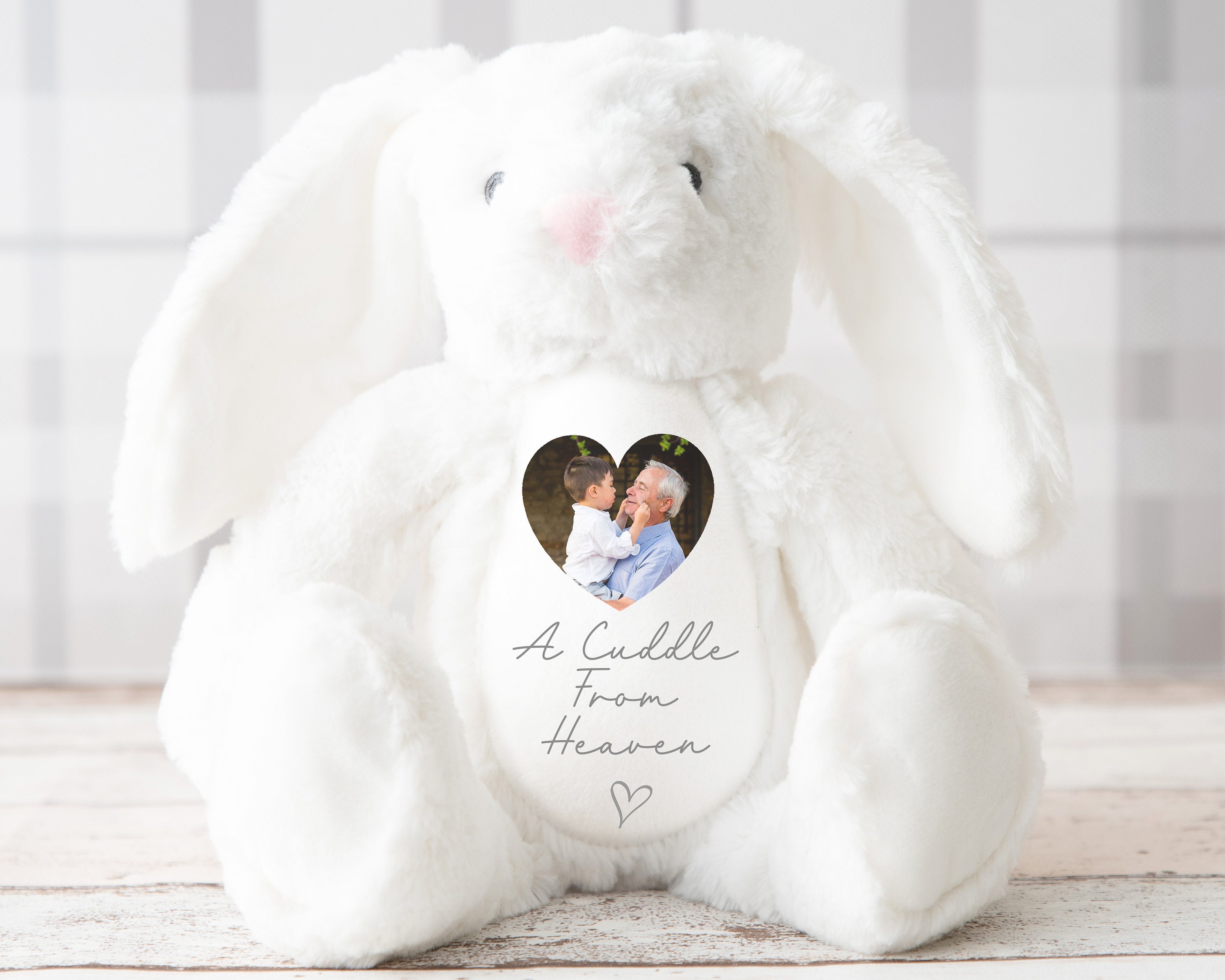 Let your memories live on with this personalised memory white teddy. Add your favourite photo of a l...
