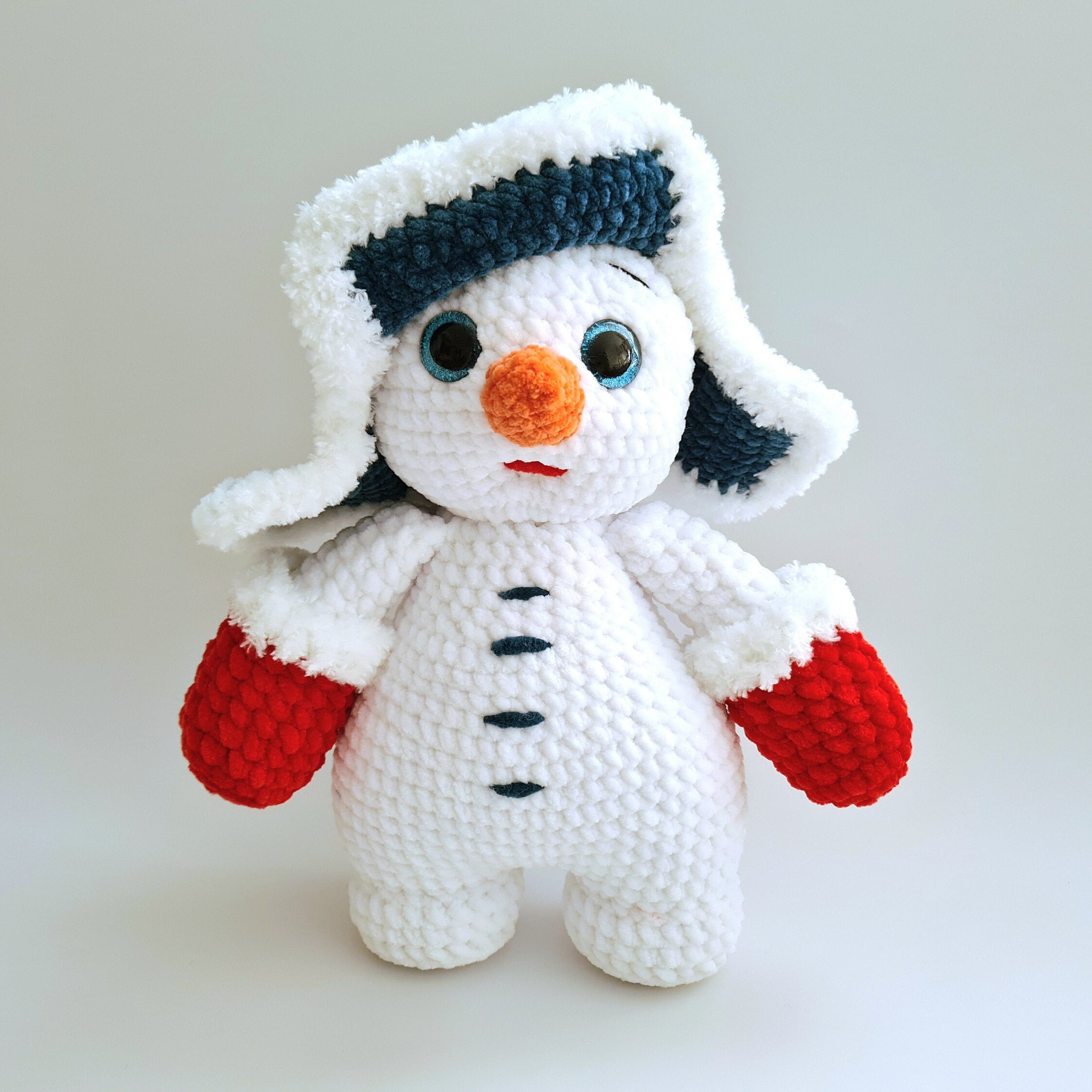 Crochet Plush Snowman: Velvet Amigurumi Toy with Hat & Gloves