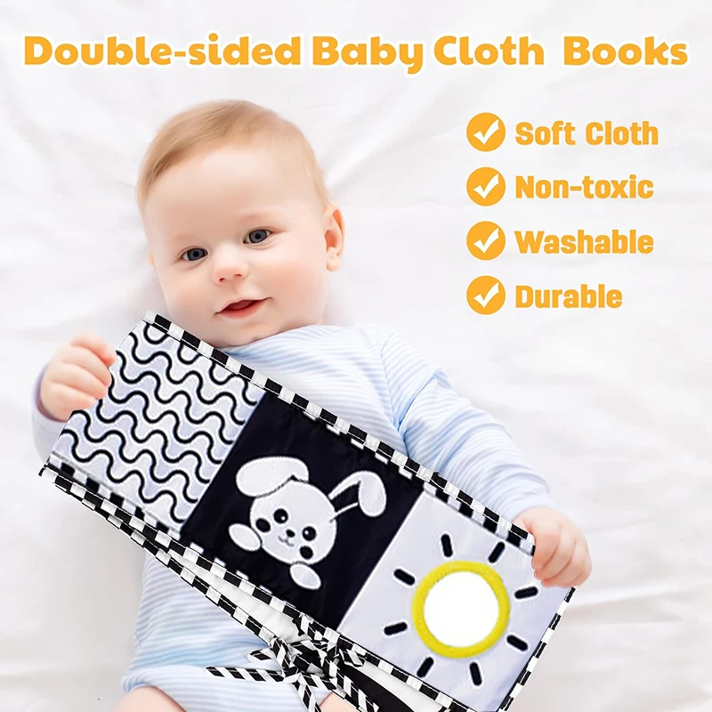 Montessori Baby Black White Colorful Animal Cloth Book Toys Baby Early Education Sensory Cloth Book ...