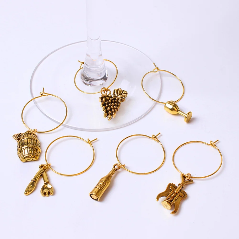 6 Pieces Gold Wine charms New Design Wine Glass Markers Rings Marker Christmas Party Bar Table Decor...