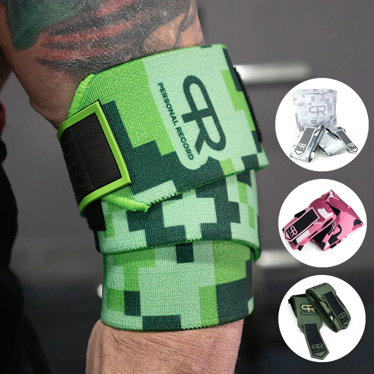 PR Heavy Duty Premium Wrist Wraps Personal Record Camouflage Mosaic Wrist Straps Weightlifting Deadl...