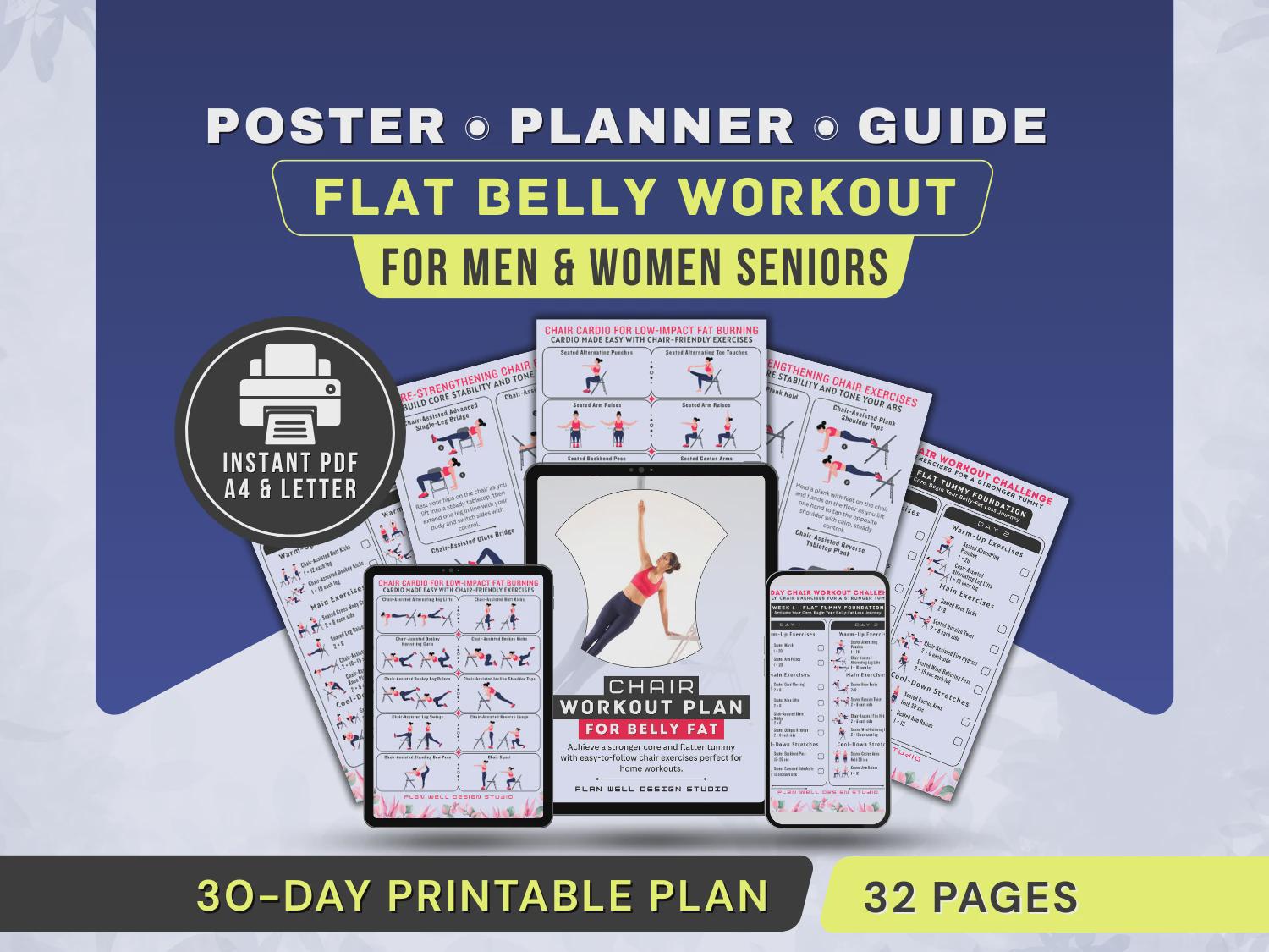 Chair Exercises for Belly Fat Poster, Flat Tummy Workout for Senior...