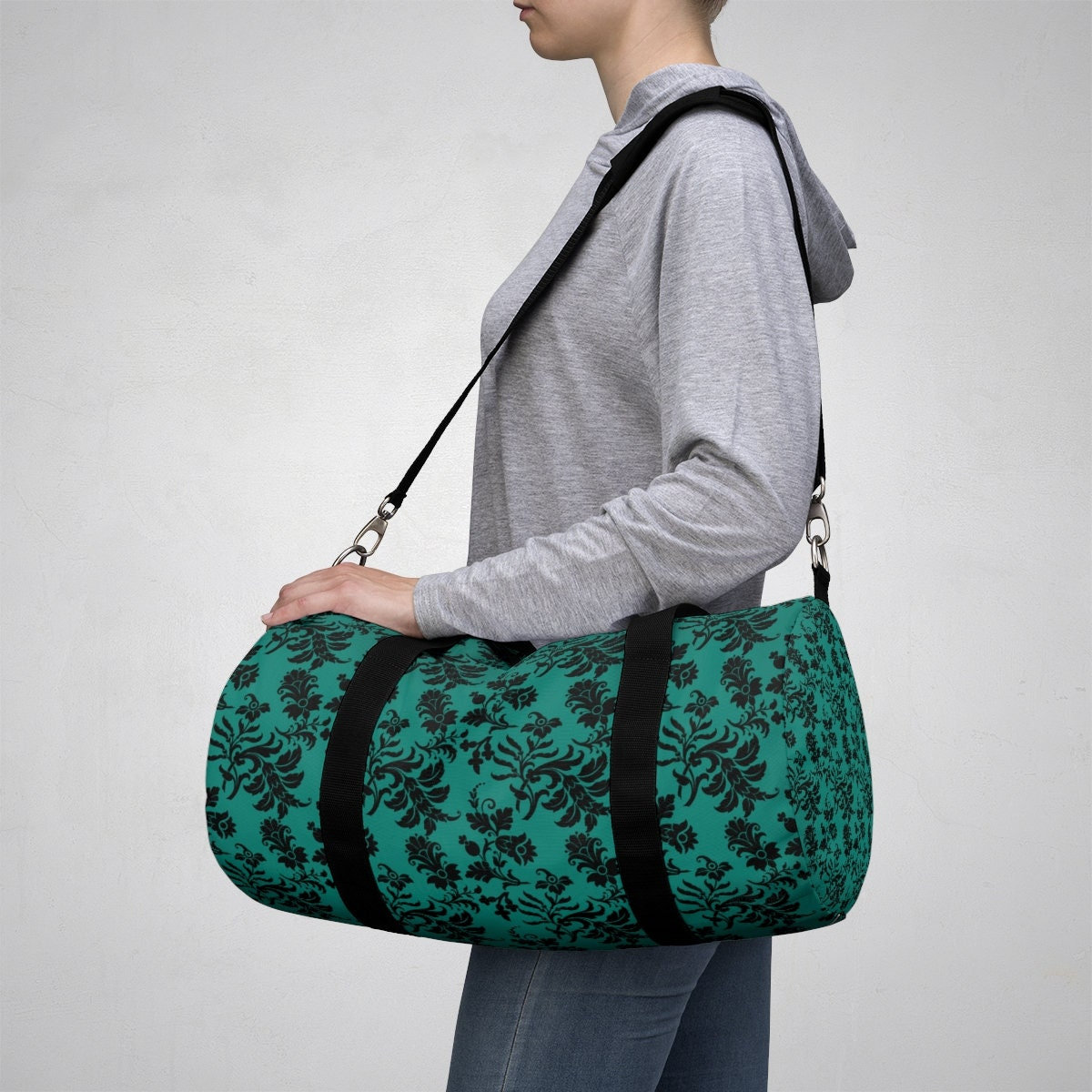 Romantic Teal & Black Rose Gothic Duffel Bag, Pastel Goth Duffe...