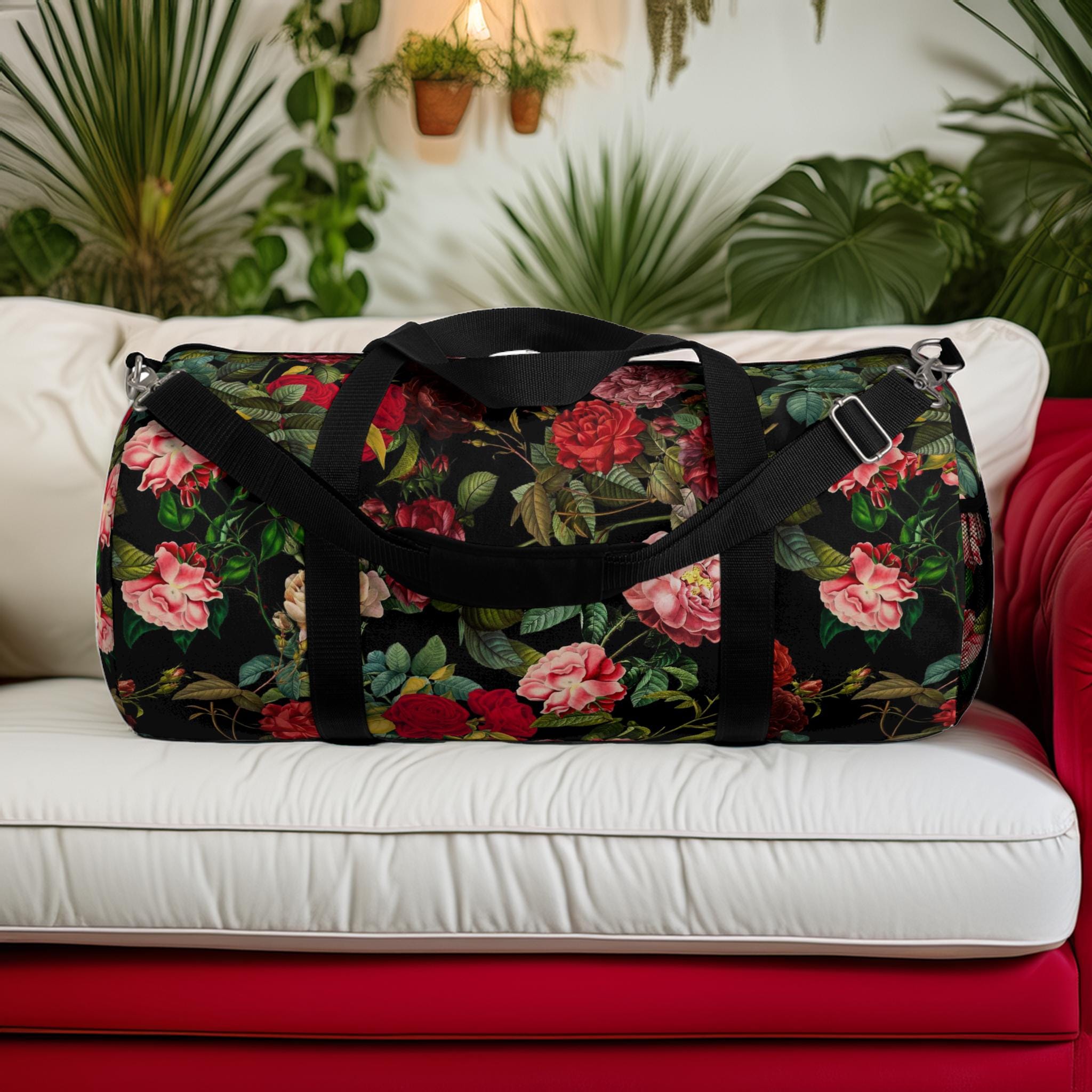 Vintage Dark Roses Whimsigoth Duffel Bag, Dark Cottagecore Duffel B...