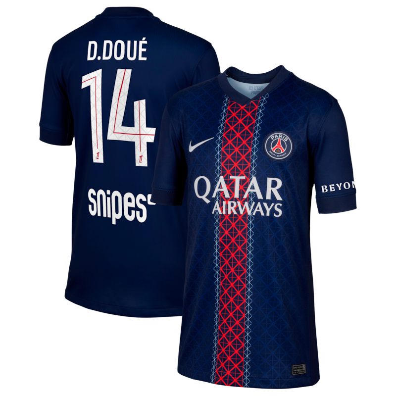 PSG Nike Home Stadium Shirt 2025-26 - Kids with D. Doué 14 p...
