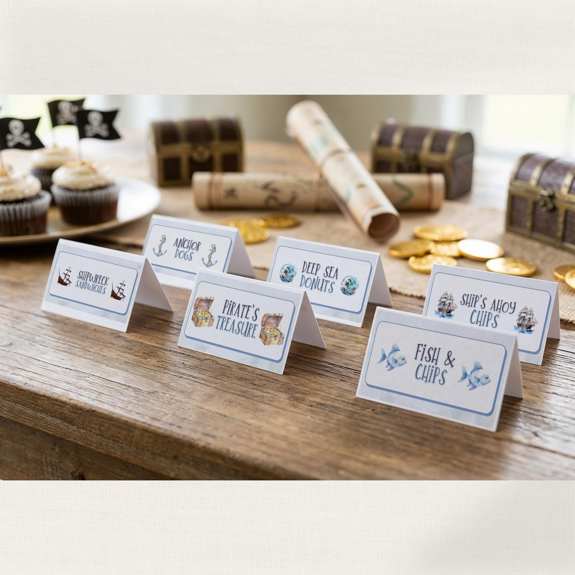 Welcome to Little Layne Paperie What's Included: - 15 pirate-themed food table labels with pre-writt...
