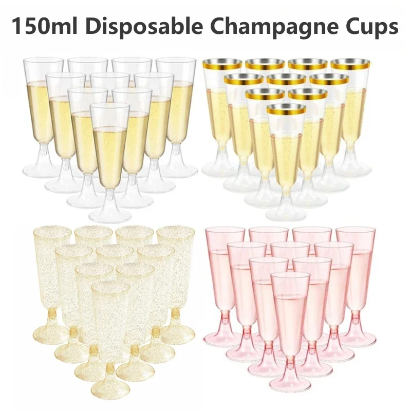 50pcs Champagne Flutes Cups Disposable Plastic Wine Glasses Clear T...