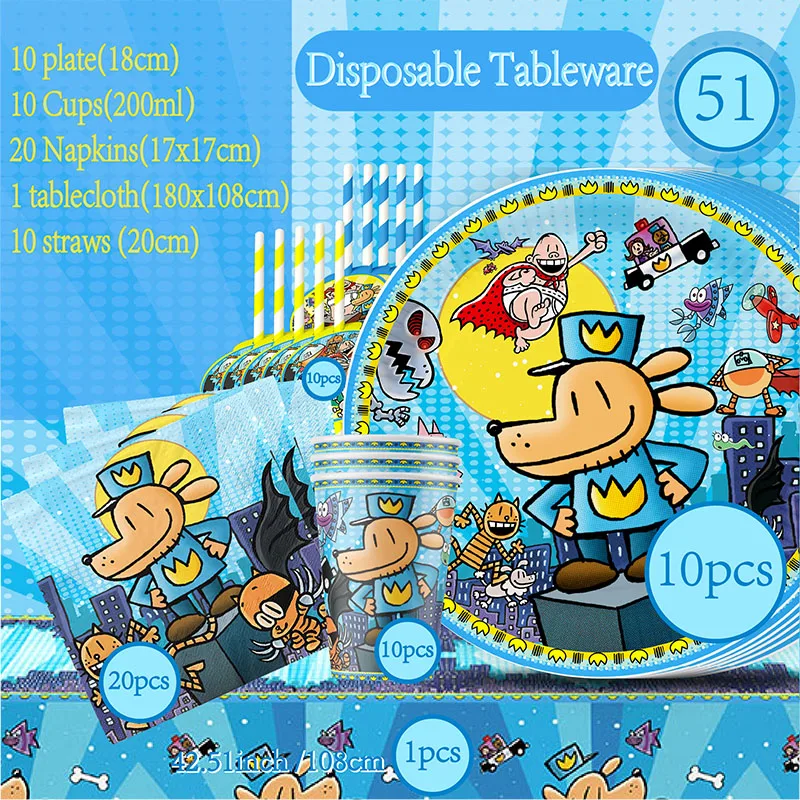 Dog Man Theme Birthday Party Supplie Disposable Tableware Paper Pla...