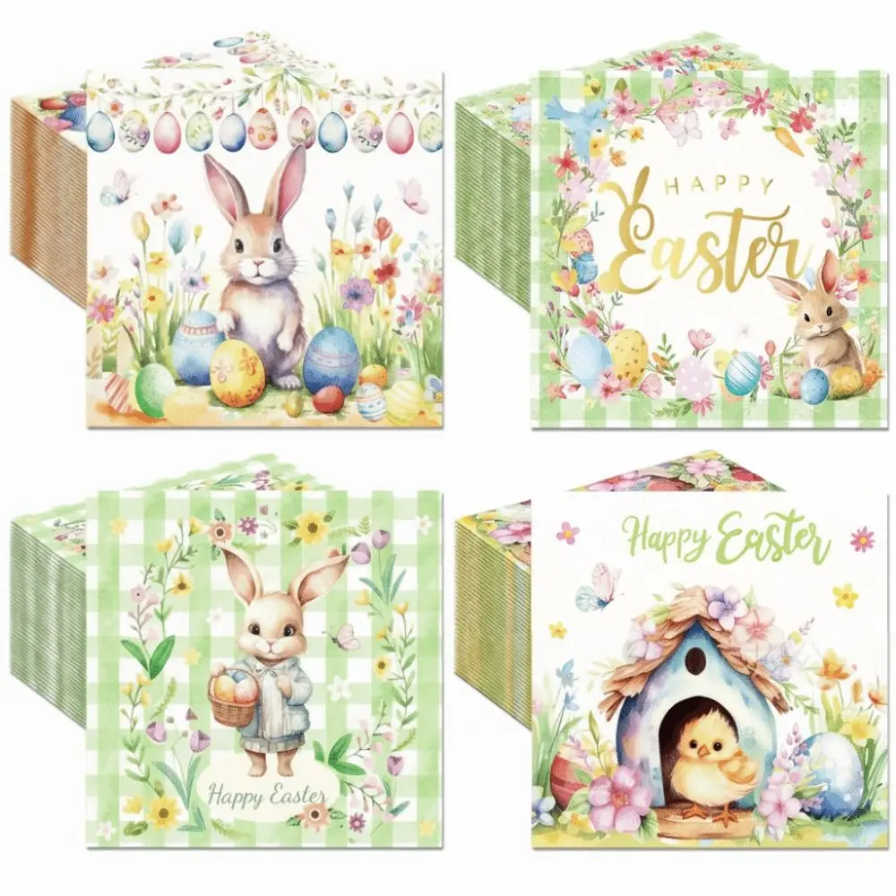 Colorful Easter Printed Napkins Printed Design Handmade Party Decoration Supplies 20 Pieces Easter B...