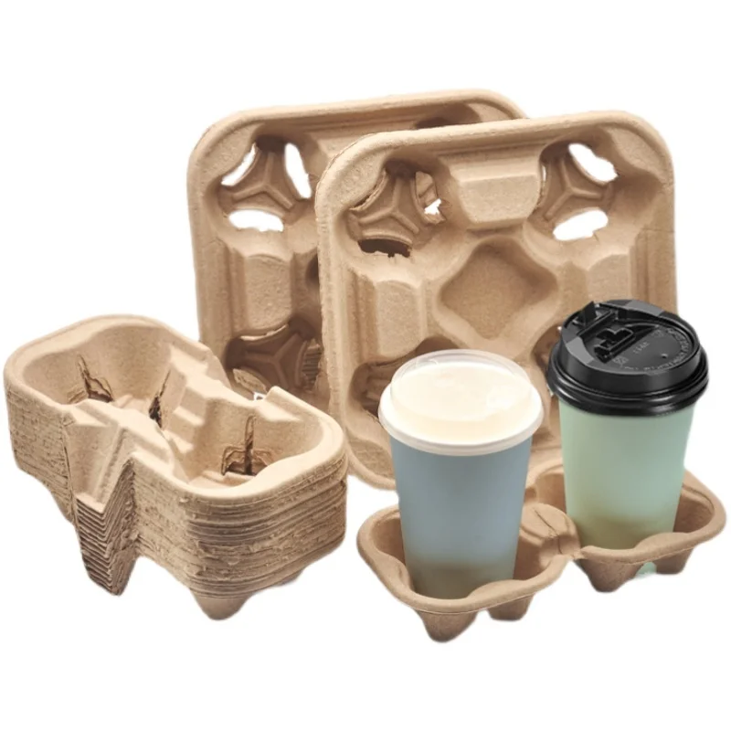 Disposable Degradable Pulp Single Wall Drink Holder Tray 8-32oz Eco...