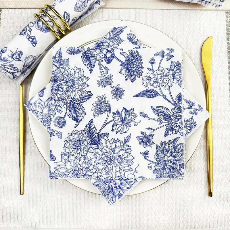 20pcs Vintage Style Blue Color Printed Peony Flower Tissue,Holiday Themed Party Disposable Do...