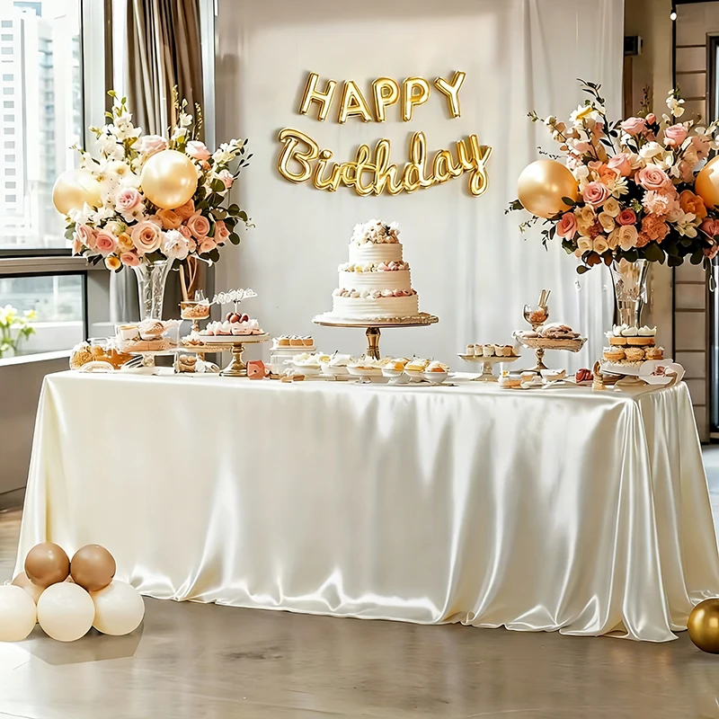 Satin Tablecloth Rectangular Silk Smooth Fabric Wedding Table Decorations for Birthday Party Bridal ...