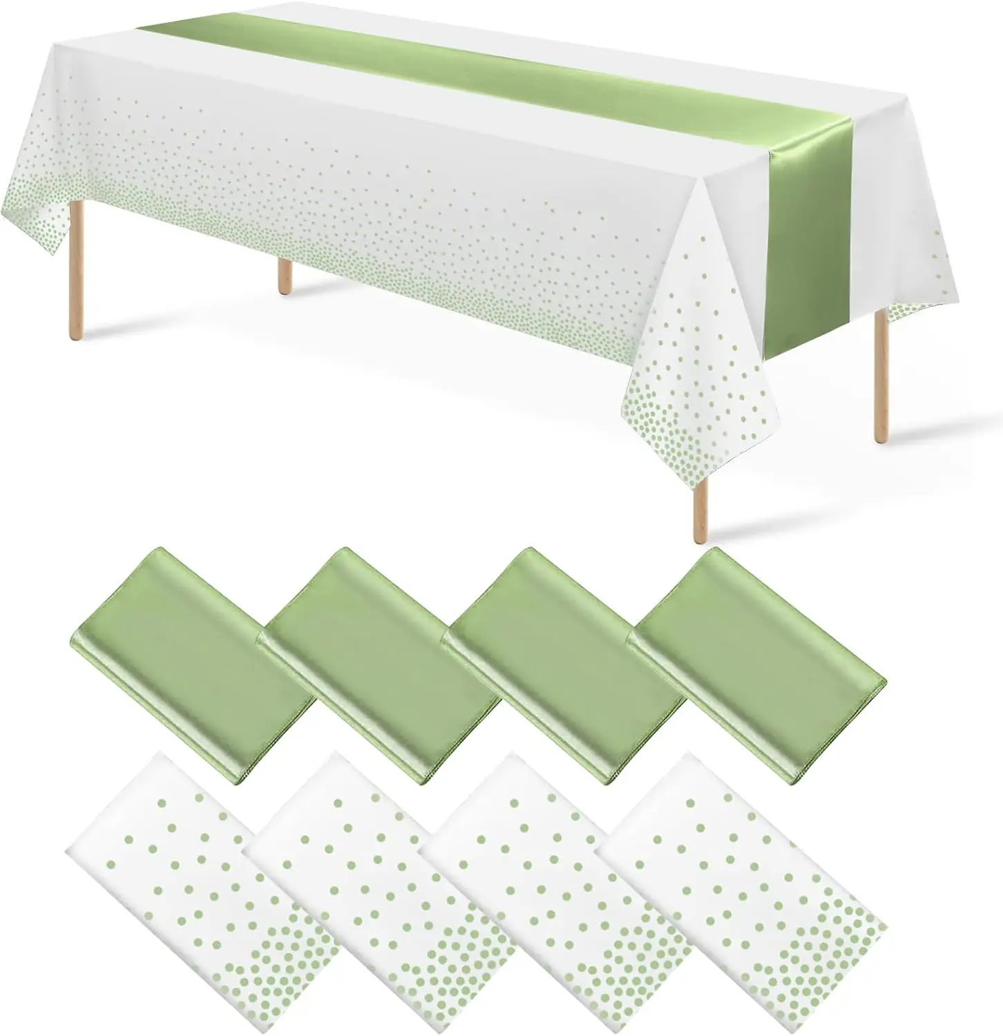 White and Sage Green Dot Tablecloth Green Dot 137*274cm Table Cover for Wedding Birthday Holiday Par...