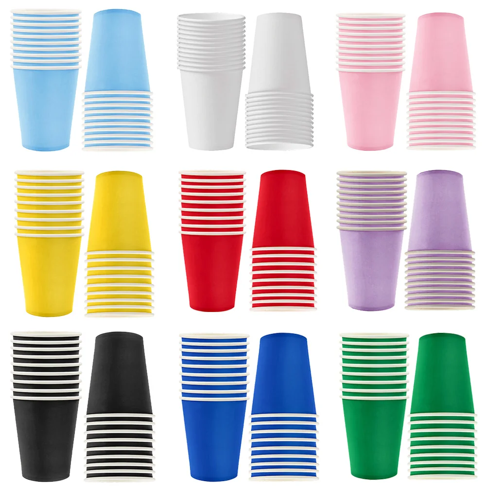 10/20/30/50pcs Solid Color Disposable Paper Cup 10 Colors Available Pink Red Blue Yellow Green White...