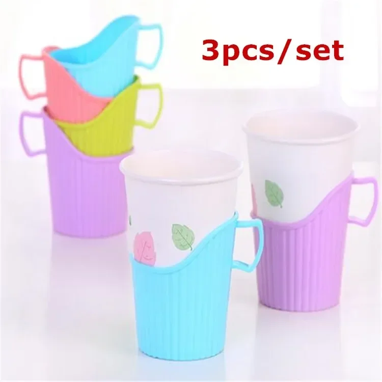 3 PCS Porable Plastic Disposable Paper Cup Holder Heat Cold Insulation silicon cup holder