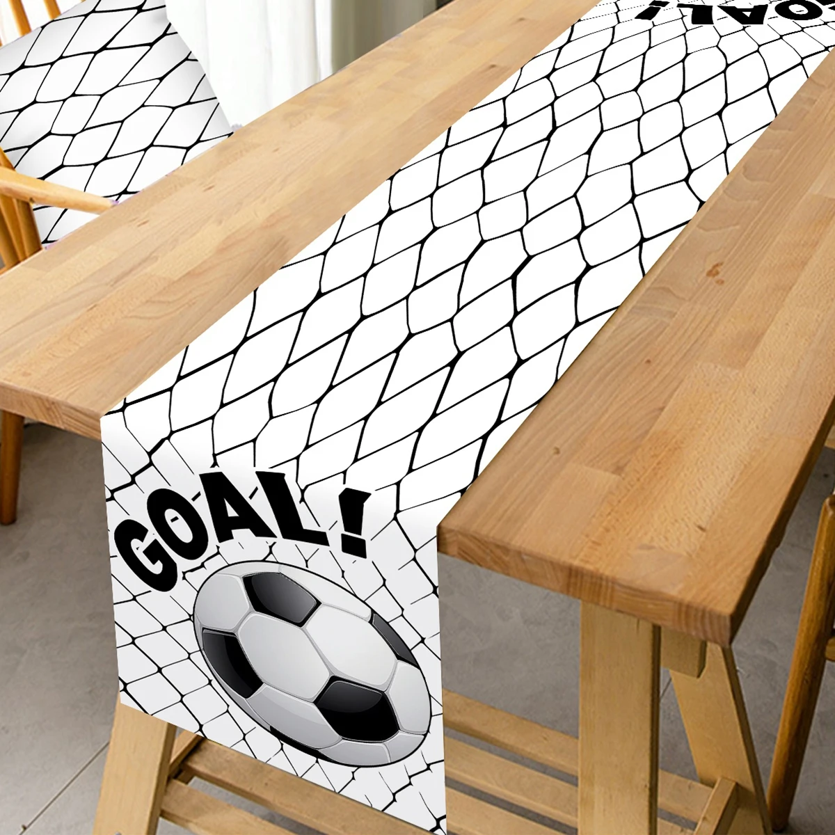 1pc Soccer Birthday Table Runner Black White Football Table Flag Ra...