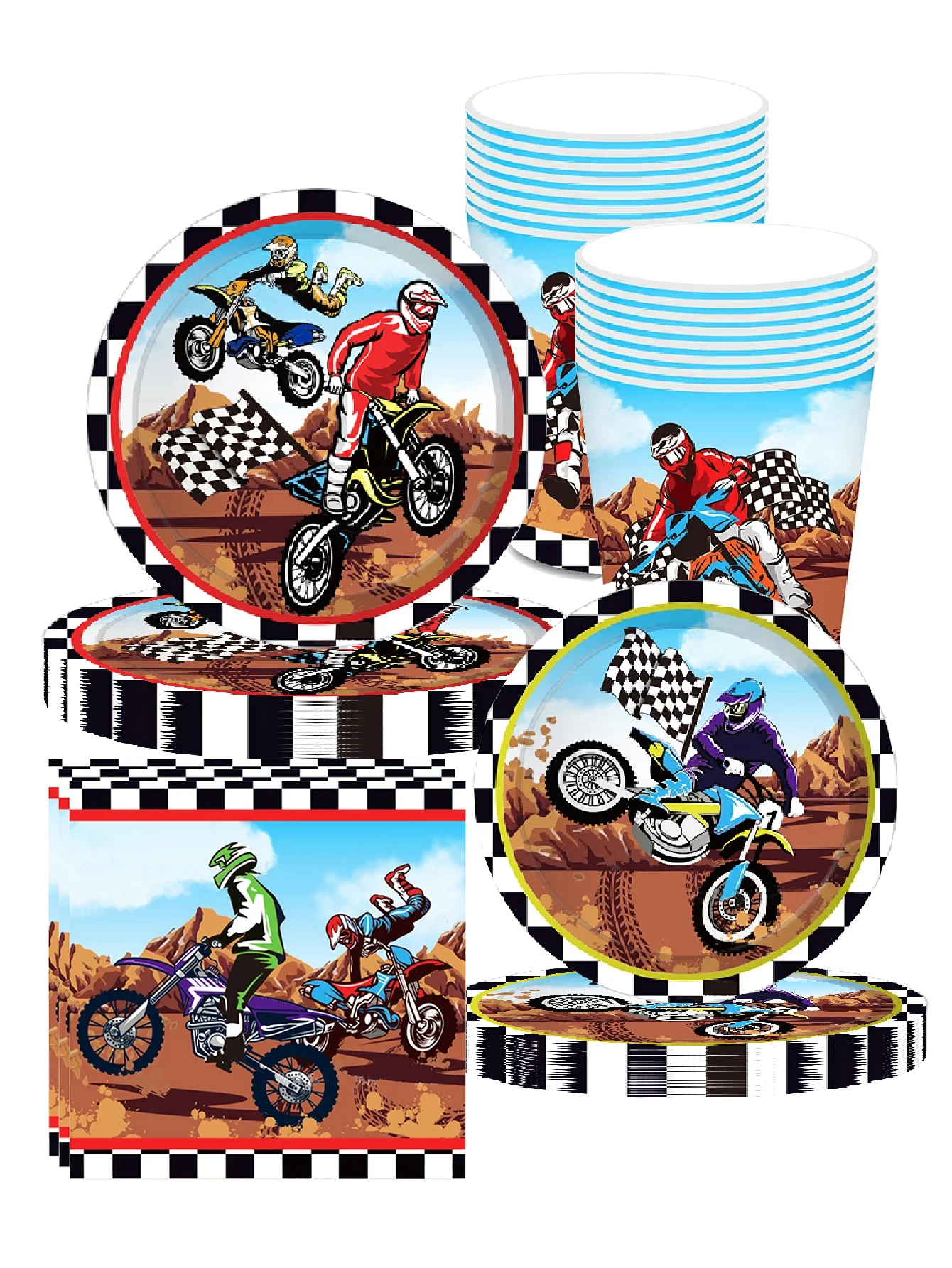 Off-Road Motorcycle Theme Party Plate, Cup, and Napkin Set Motorcycle Theme Party Tableware Set Off-...