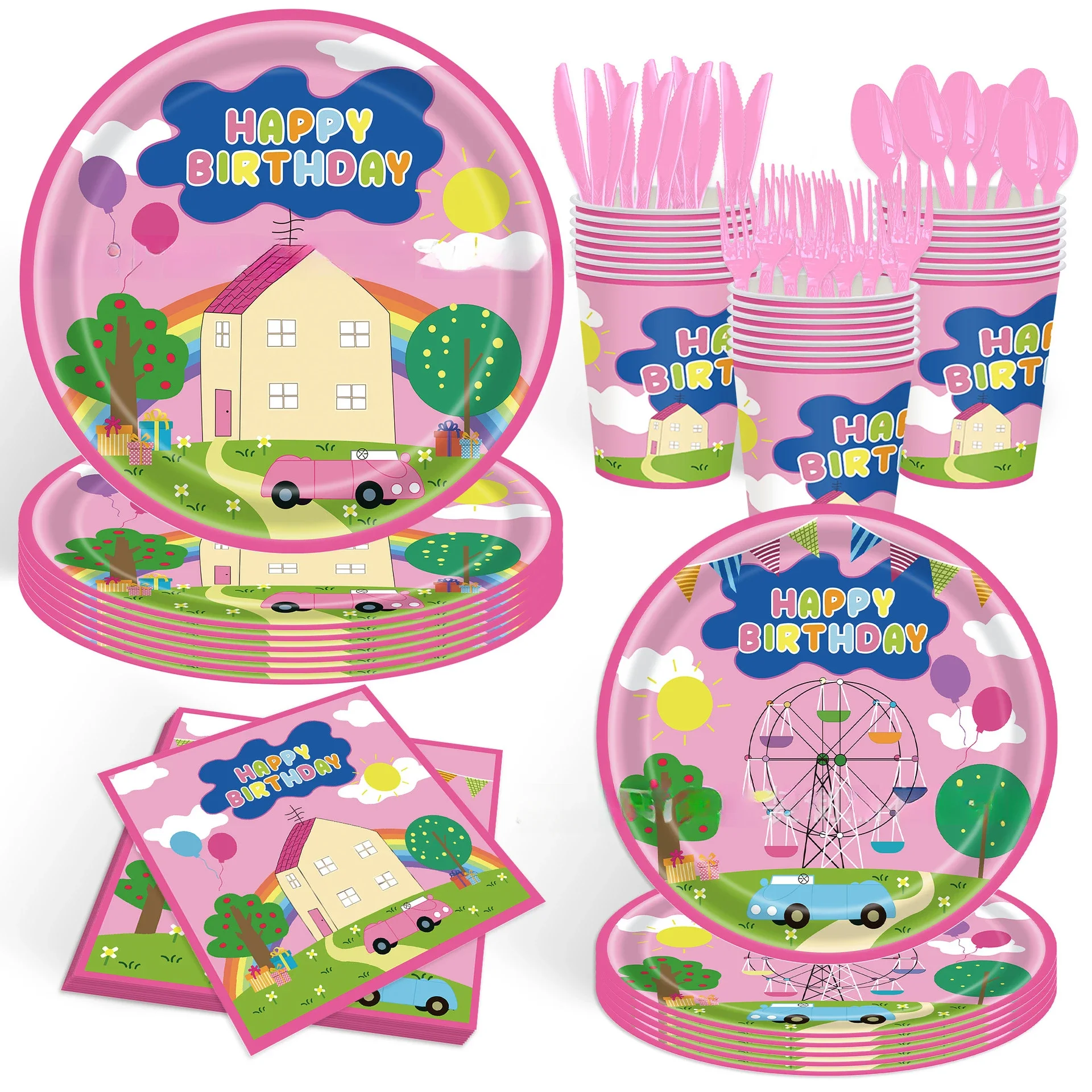 20pcs Pink Pig Birthday Party Tableware Set Disposable Plate Tissue Paper Cup Party Set Holiday Part...