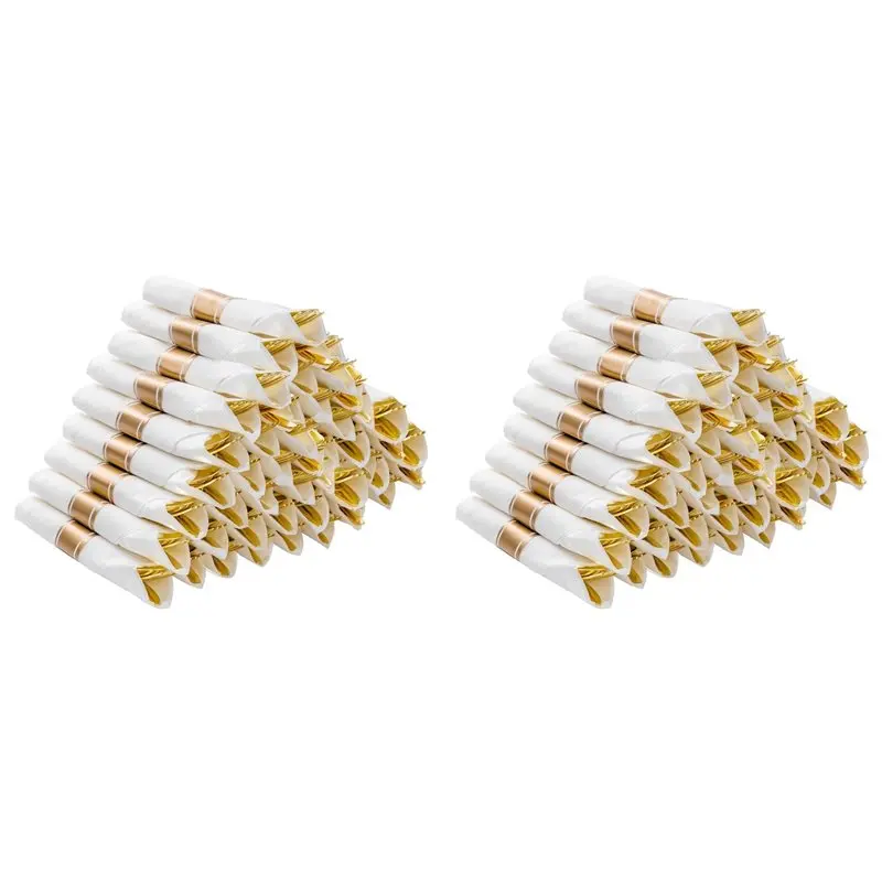 BSEVB-30X Pre Rolled Silver Plastic Silverware Set,Pre Rolled Napkins With Silver Cutlery Set For Pa...