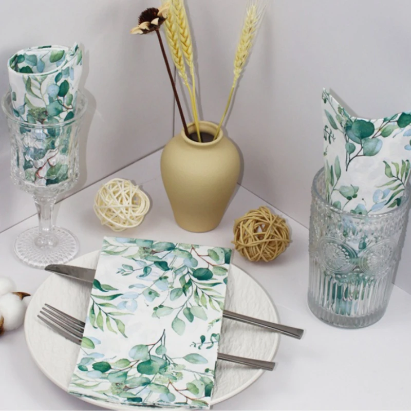 20pcs Long Green Leaf Napkins, Disposable Watercolor Plant Print Se...