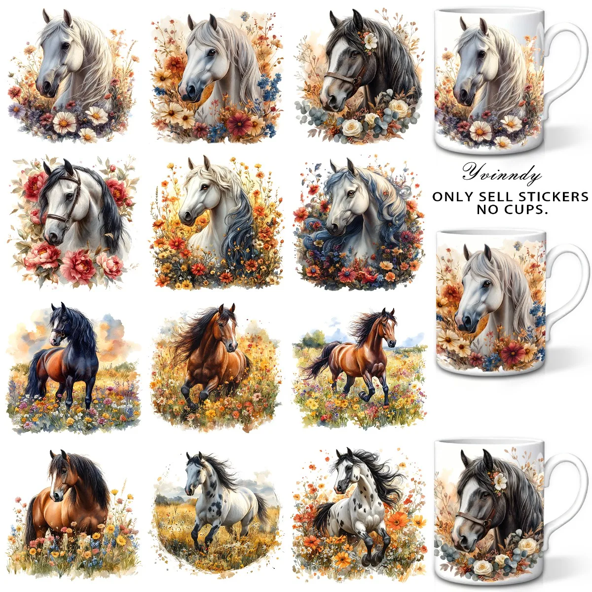 12PCS/SETFloral Horse UV DTF DIY Transfer Sticker For DIY Cups (Onl...