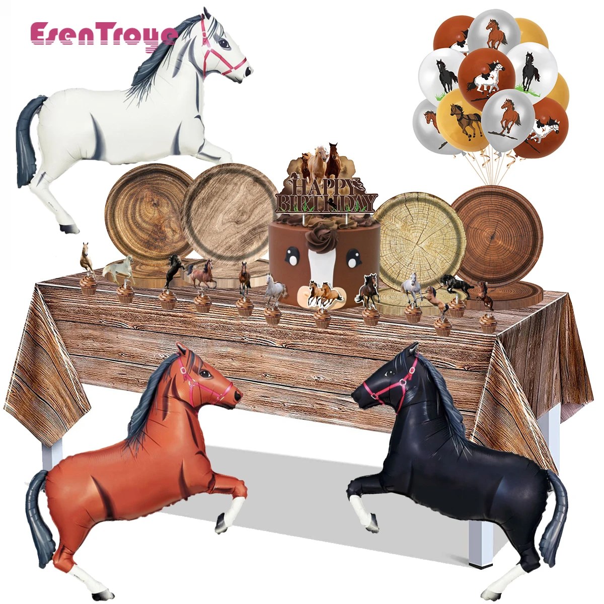 Natural Brown Wood Grain Plastic Tablecloth Paper Plates for Rustic Western Barn Cowboy Horse Birthd...