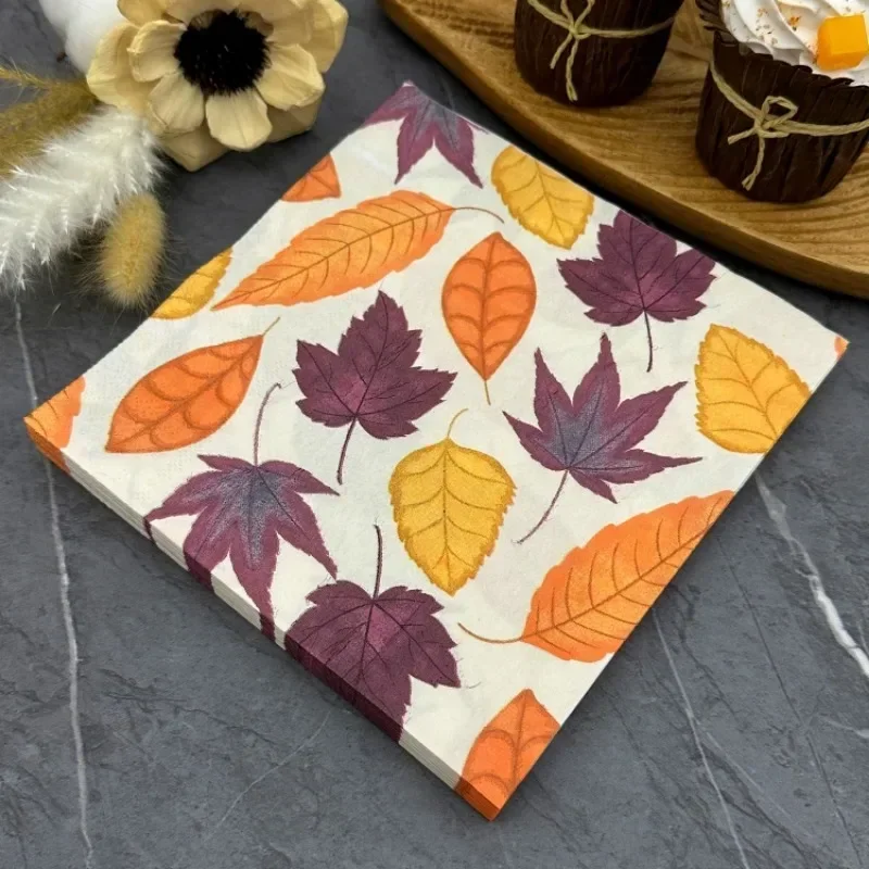 20pcs Dining Table Printed Napkins Creative Paper Placemats Square Wood Pulp Paper Autumn Maple Leav...