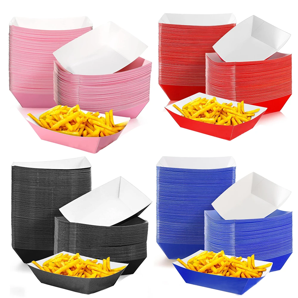 Party Disposable Paper Food Trays Pink Red Blue Black Plate Boats Box BBQ Dessert Multiple-topic Wed...