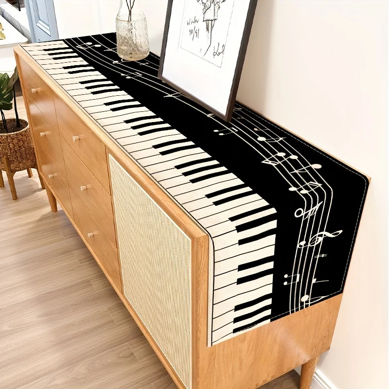 Piano Musical Note Striped Linen Table Runner Birthday Party Decor Washable Musical Theme Table Runn...