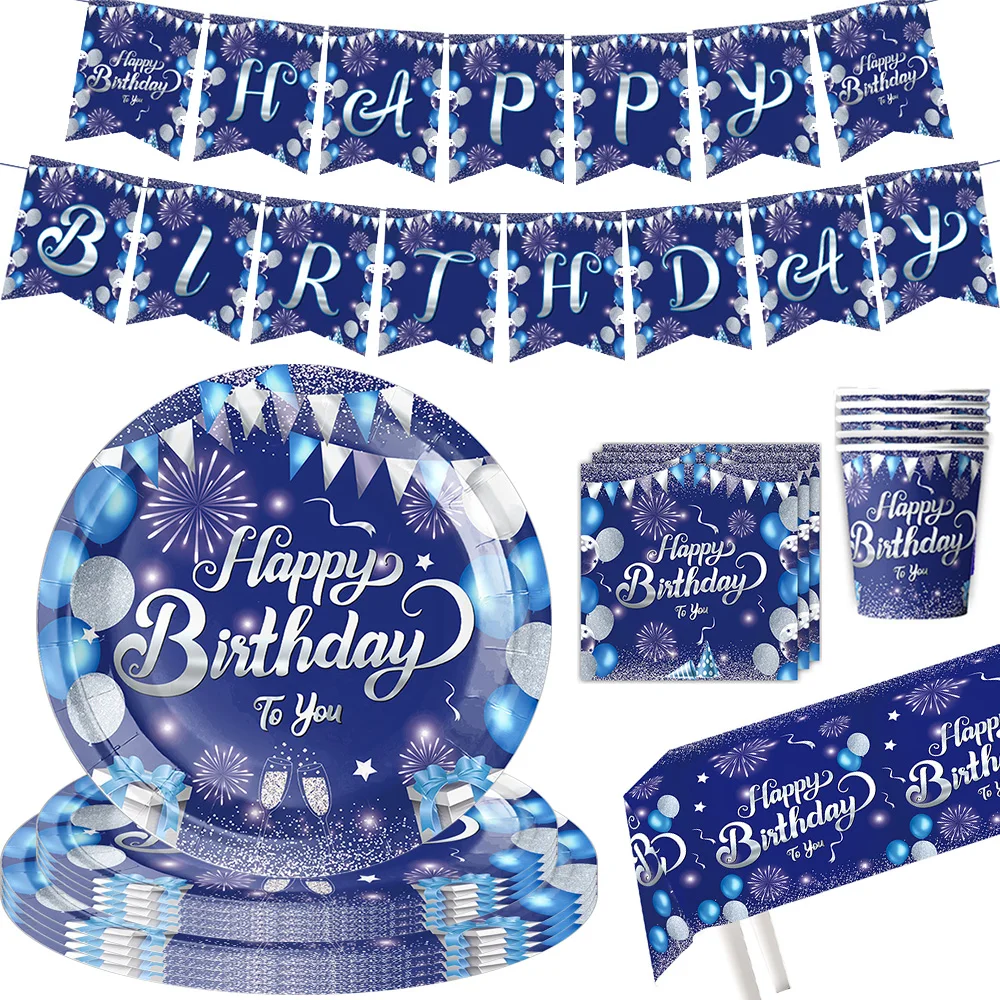Blue Birthday Decoration Disposable Party Plates Navy Blue Tableware Set Tablecloth Tissue Children ...