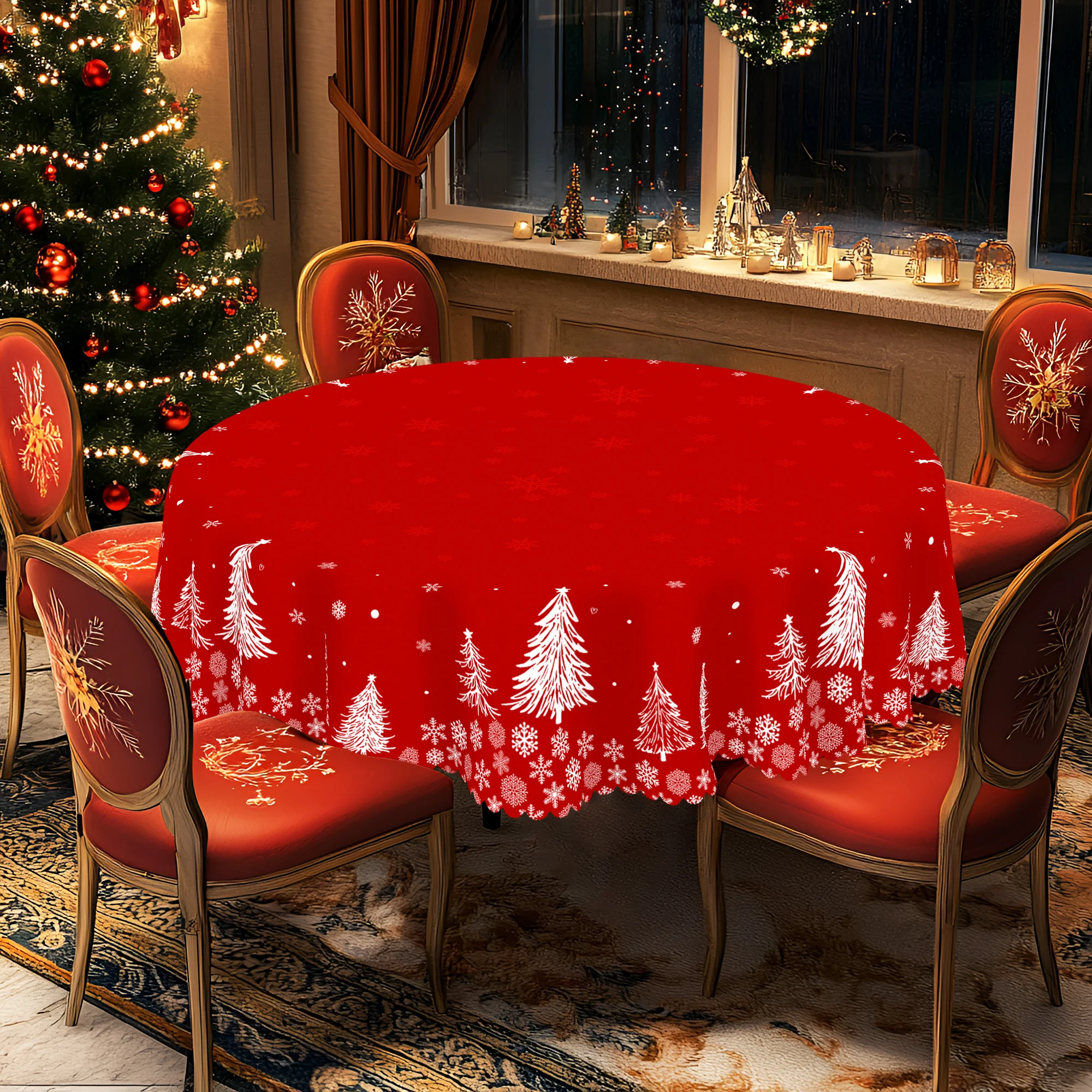1 Christmas Themed Tablecloth, Various Sizes, Christmas Tree Print Pattern Party Decoration Tableclo...