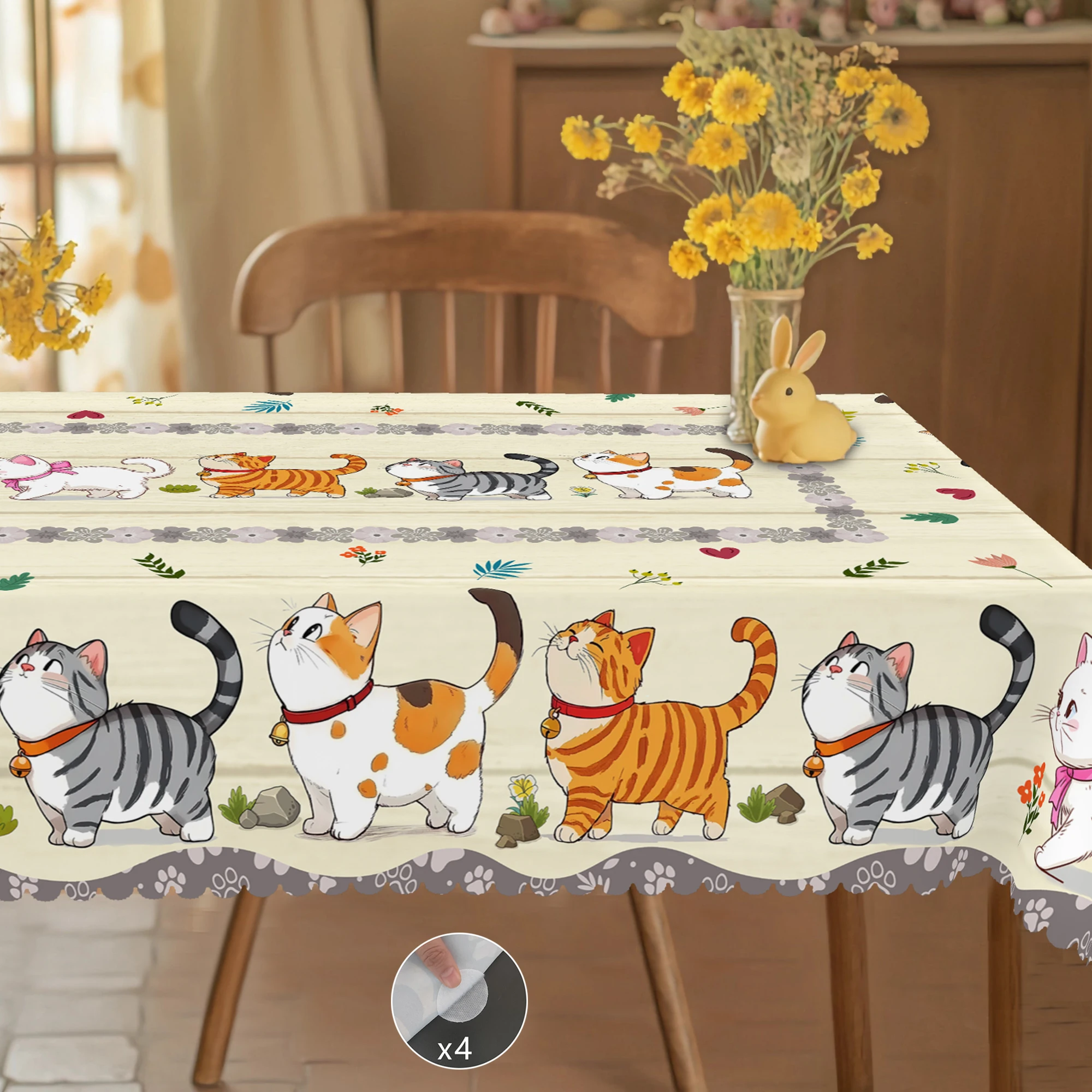 1 Cat Theme Printed Tablecloth, Country Farmhouse Style, Kitten, Wooden Pattern Design, Suitable for...