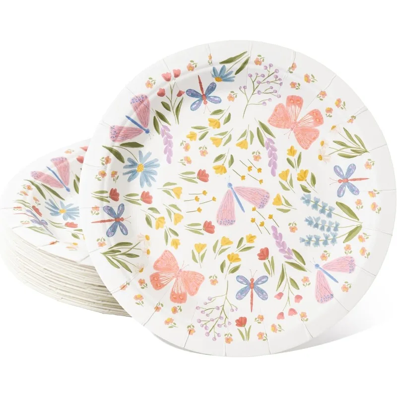 24Pcs Floral Paper Plates Garden Party Paper Plates Butterfly Plate...