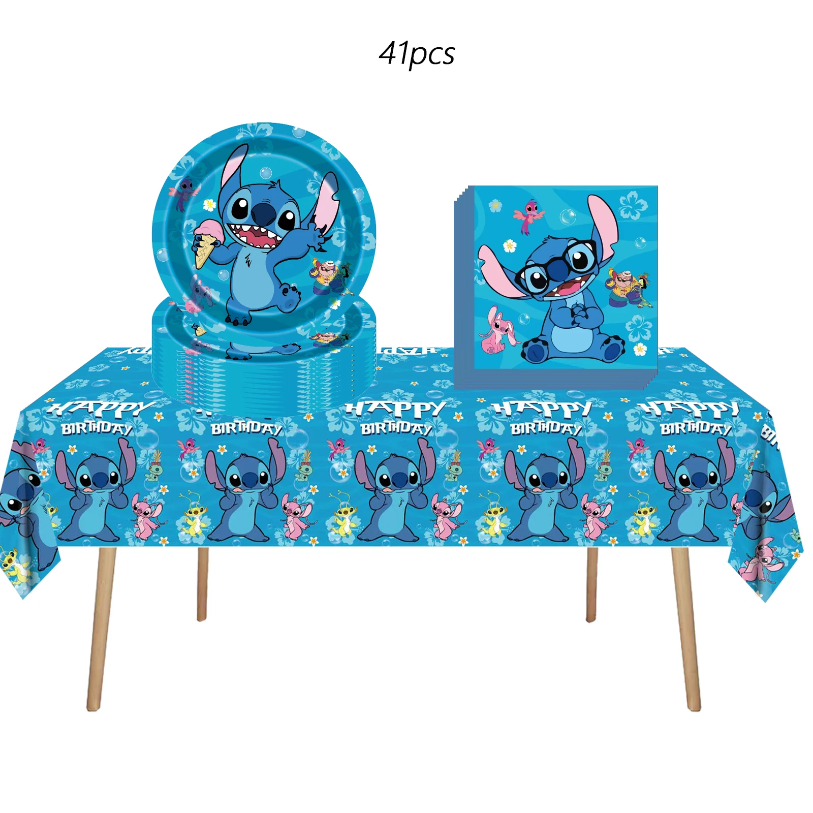 41pcs Lilo Stitch Birthday Party Decor Tableware 7 inch Plate Napkin Tablecloth for Kids Party Photo...