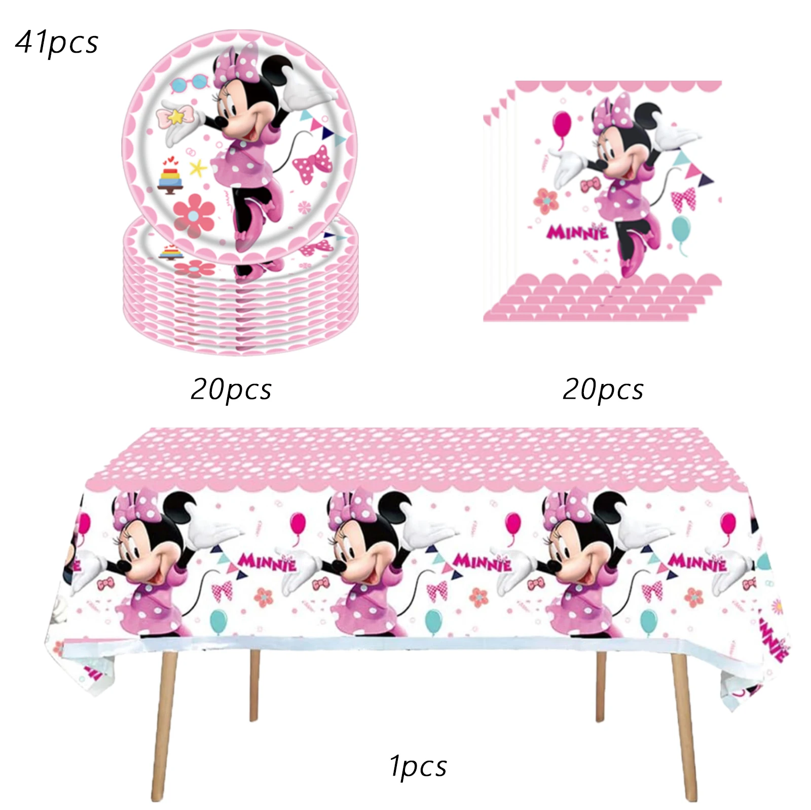 41pcs Minnie Birthday Party Decor Tableware 7 inch Plate Napkin Tablecloth for Kids Party Photo Boot...