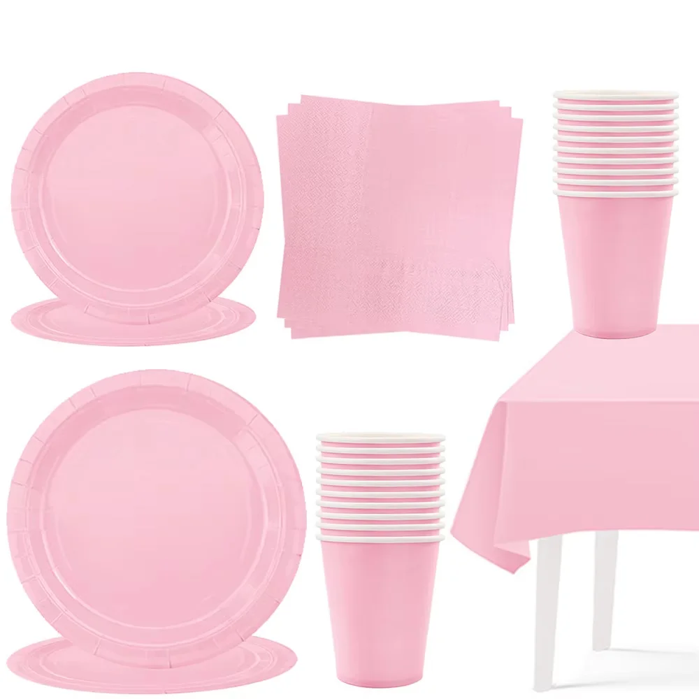 Pink Party Supplies Disposable Dinnerware Pink Paper Plates Cup Napkins Plastic Tablecloth Baby Show...