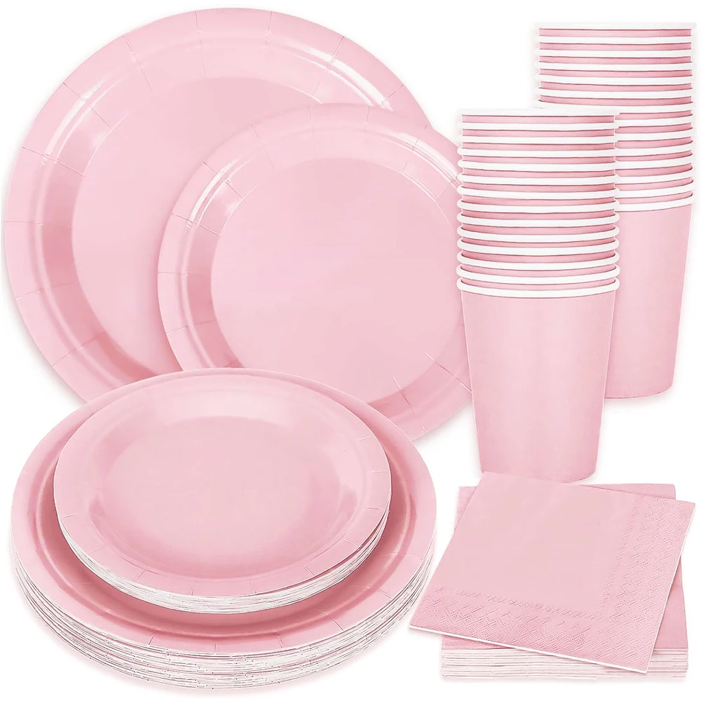 Pink Party Supplies Disposable Dinnerware Pink Paper Plates Cup Nap...