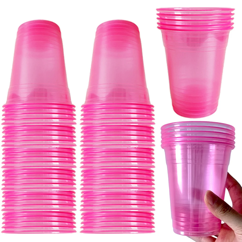 10-100pcs Pink Plastic Cups Disposable Stemless Clear Cup for Cockt...